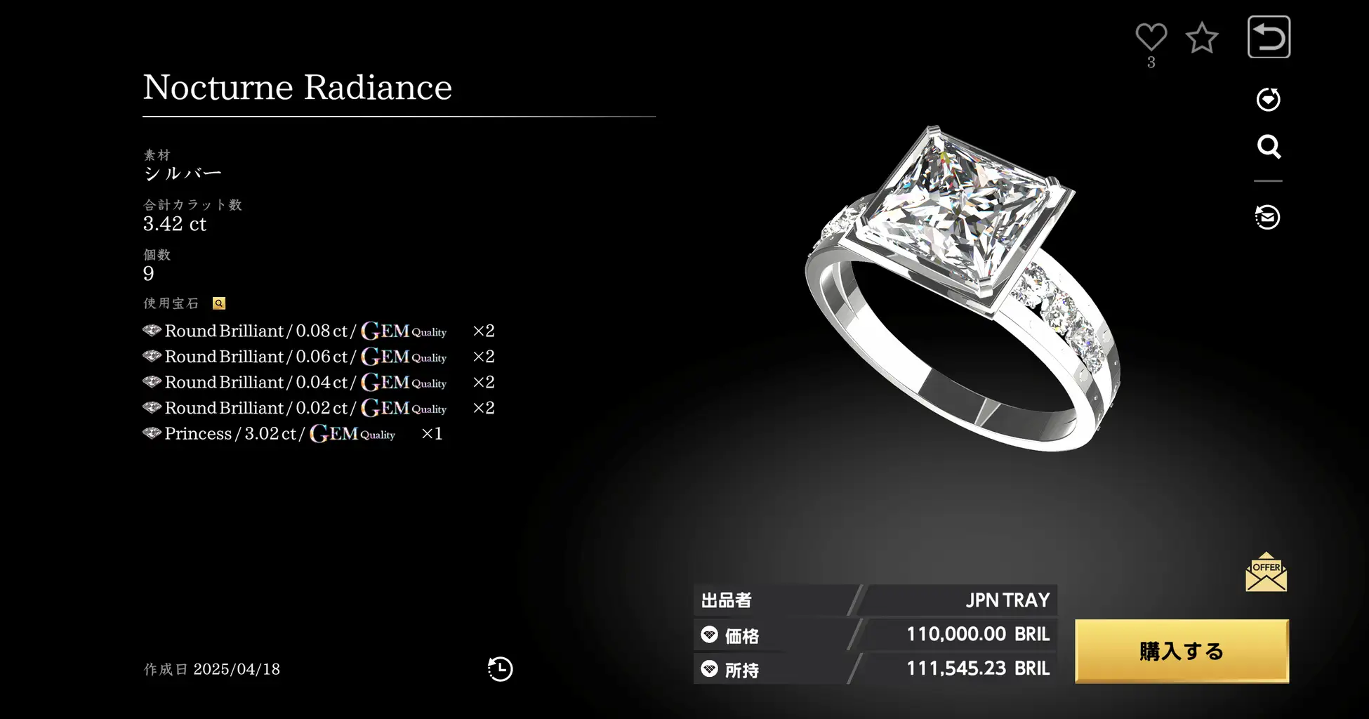 NFT宝石は、ゲーム内で他プレイヤーとBRILトークンで取引をしたり、デジタルジュエリーに加工して販売していくことが可能。
