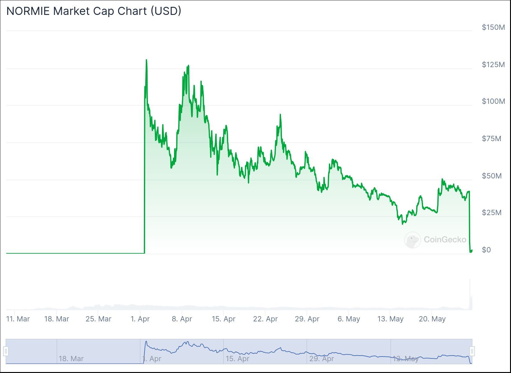 Normieは、Ethereumレイヤー2ネットワークの手数料を大幅に引き下げるDencunアップグレードの導入後、ブロックチェーンネットワークを席巻したミームコインの熱狂の中、3月にBaseでローンチされた。初期の成功を収め、この事件の前には時価総額が1億ドルを超えていた。