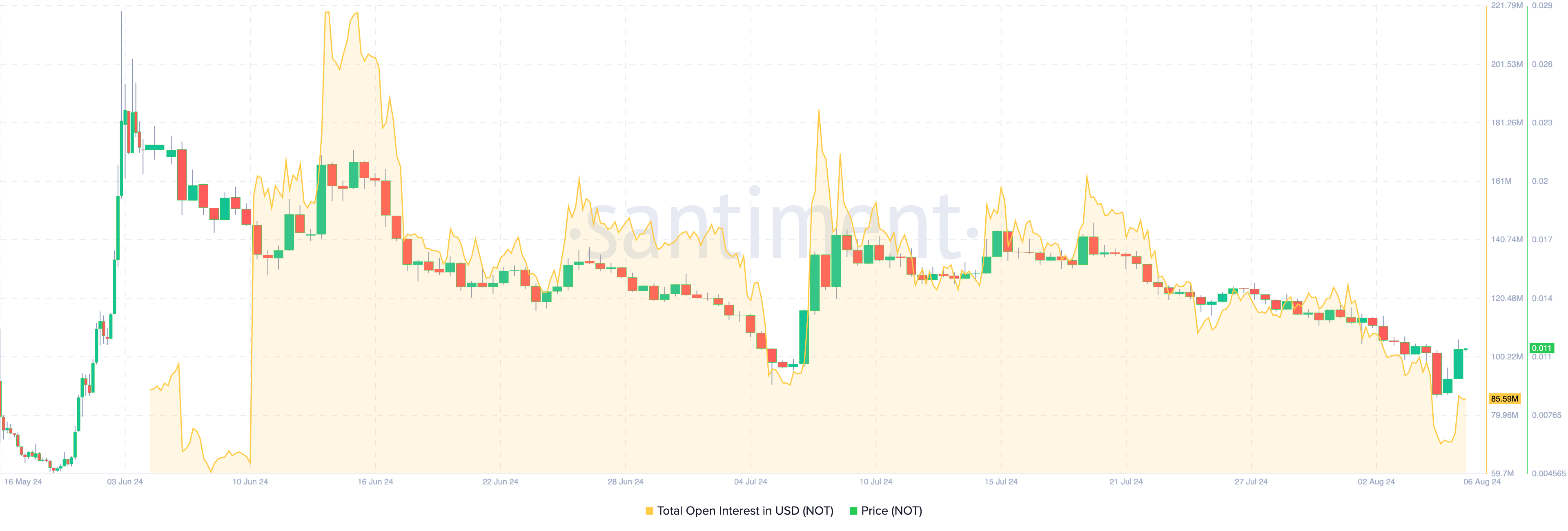この期間、OIが2億2,000万ドルを超え、NOTの価格は史上最高値の0.028ドルに達した。