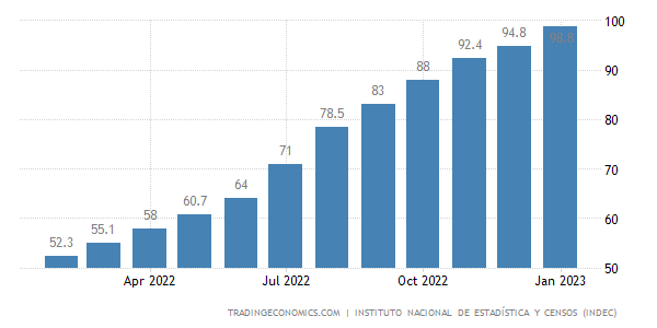 こうした暗号資産への関心の高まりは、アルゼンチンの高いインフレ率と消費者物価指数(CPI)の上昇に起因している。ペソは1月に対米ドルでほぼ12%下落した。インフレ率はなんと99%に達しており、将来的に良い兆候はみられそうもない。