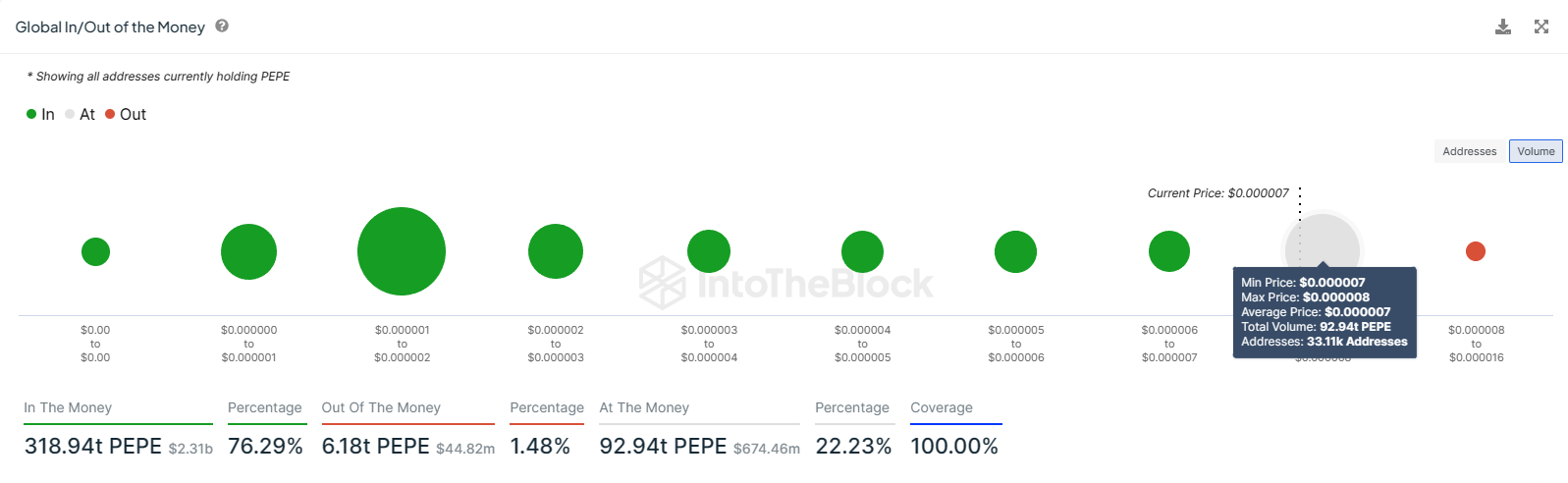 彼らの確信は、ミームコインが上昇を続けるために必要なサポートとなっている。92兆PEPE以上が投資家にとって利益になる寸前であるため、この価格上昇は続くと予想される。