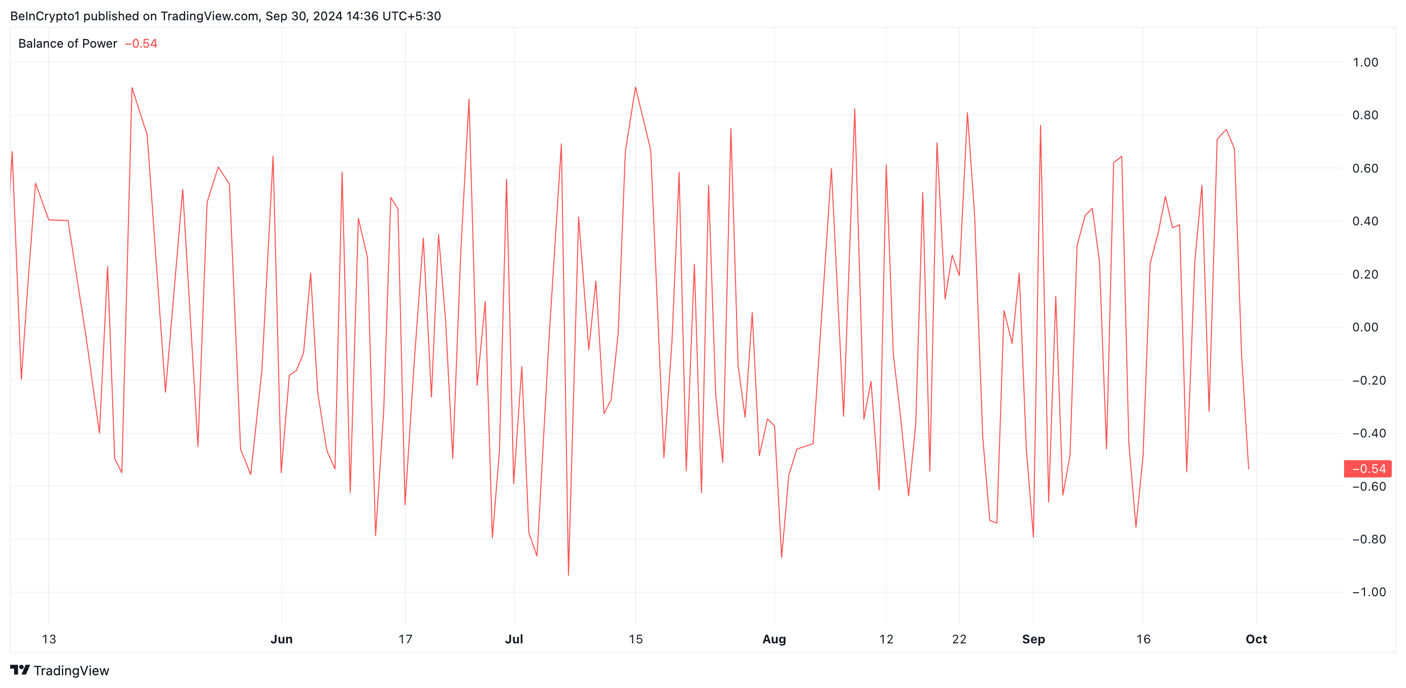 Sponsoredさらに、PEPEのパワーバランス(BoP)からのマイナスの測定値は、弱気派が市場を支配していることを示しています。PEPEのBoPは、買い圧力と売り圧力の関係を測定するもので、プレス時点では-0.54で、弱気なセンチメントが優勢で、売り圧力が強いことを示しています。