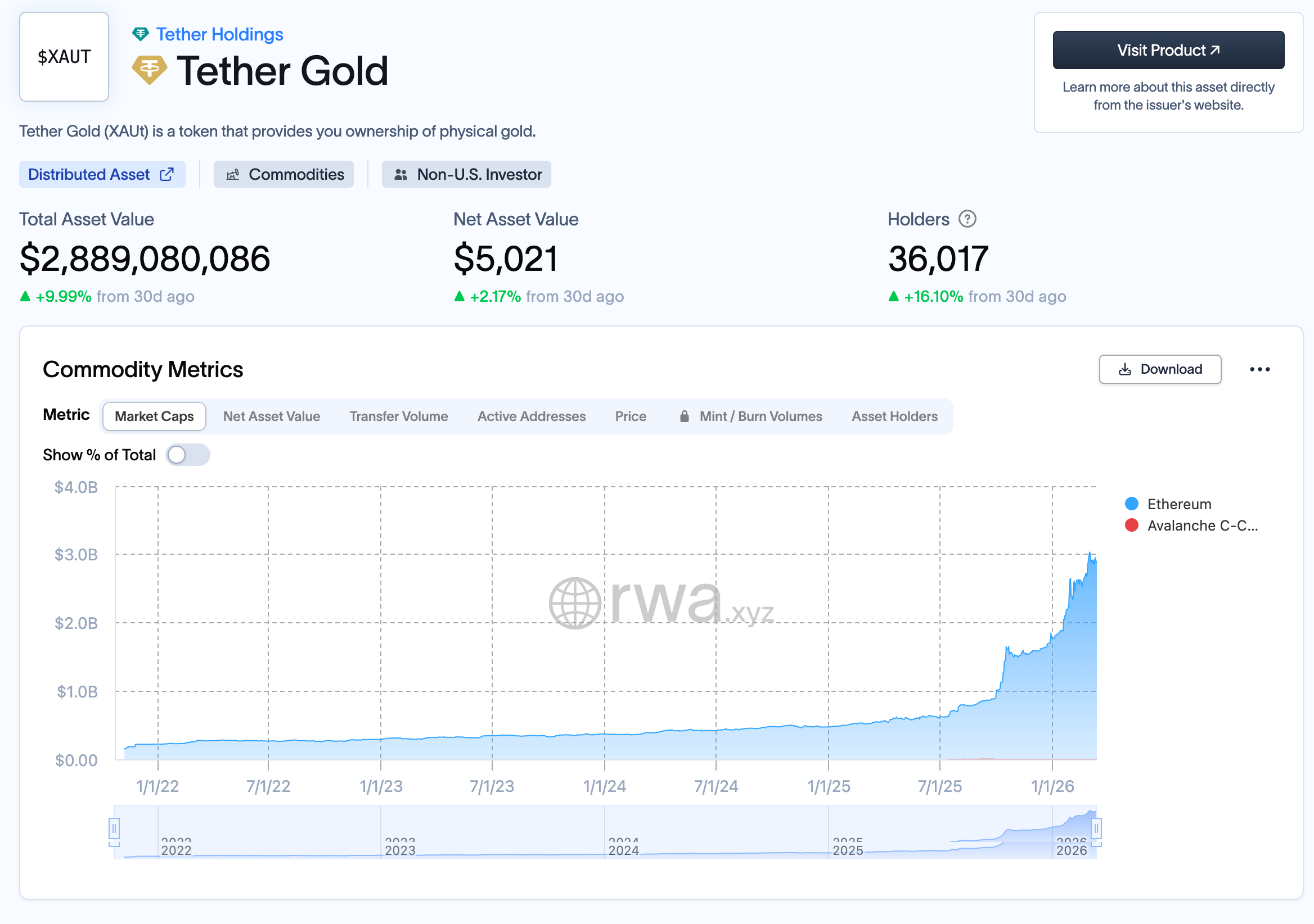 市場全体の時価総額は26年2月に60億ドルを突破し、26年だけで20億ドル以上増加した。金価格自体も同年1月29日に1トロイオンス5,595ドルの史上最高値を記録。その後も5,200ドル前後の高水準で推移しており、過去1年で77%超の上昇率を誇る。