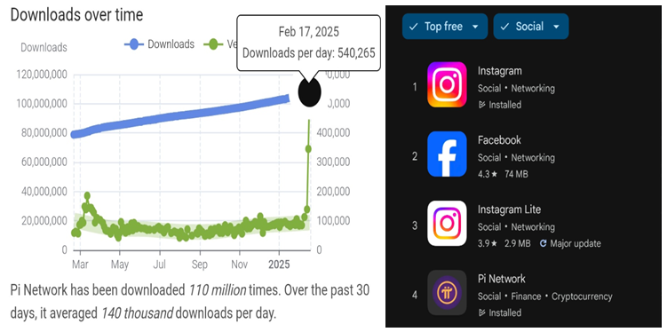 さらに、グプタはPiネットワークがGoogle Playストアのソーシャルカテゴリで4位に急上昇したと示した。グプタによれば、これはFacebookやInstagramのような主要なテックジャイアントと同じリーグに位置することを意味する。
