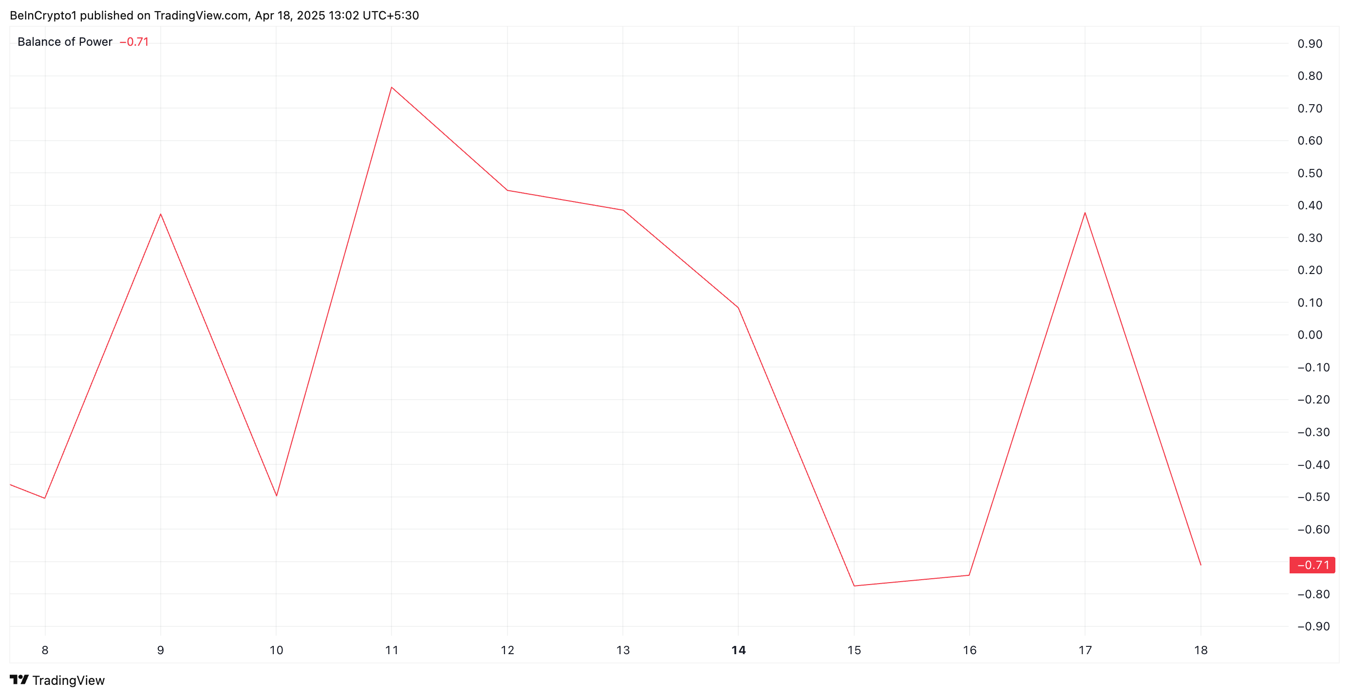 一方、技術的指標はサポートの弱化を示唆している。例えば、PIのバランス・オブ・パワー(BoP)は本稿執筆時点で低下しており、現在0.75でゼロを下回っている。