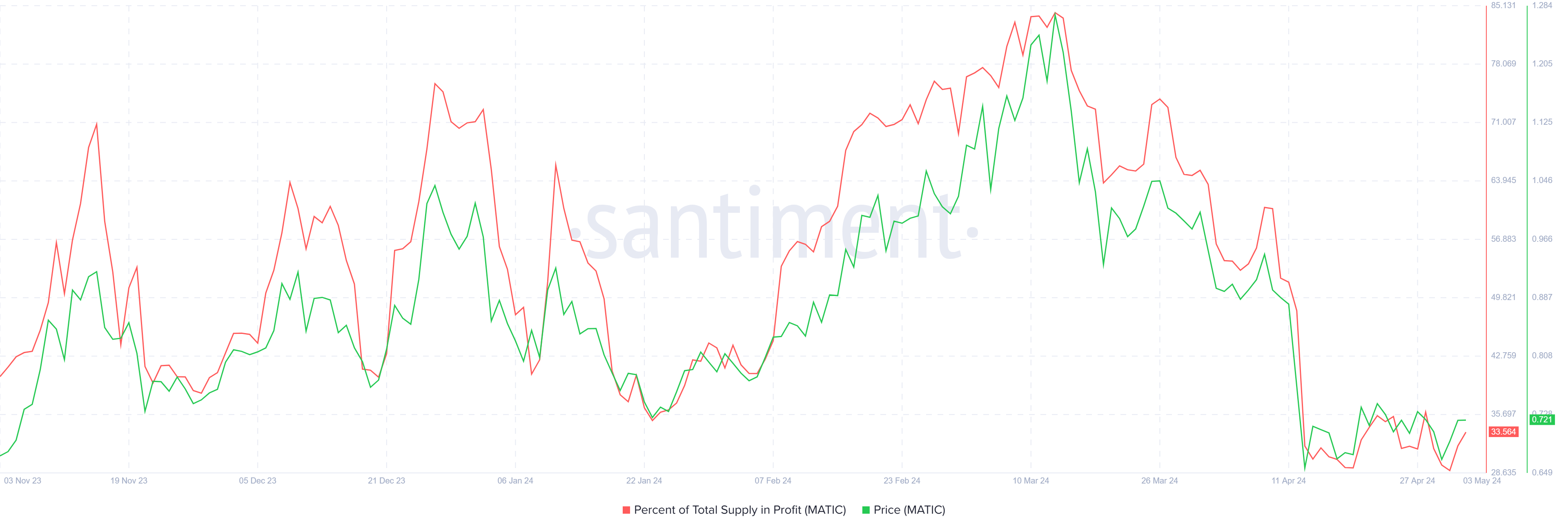 MATICの流通供給全体の34%未満が利益となっており、これは比較的珍しいことである。最近の修正にもかかわらず、ほとんどの暗号通貨供給の少なくとも50%が利益になっている。