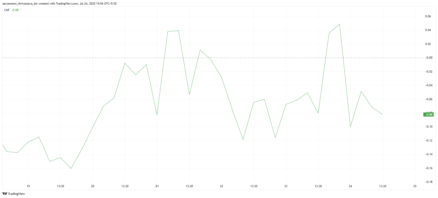 チャイキン・マネー・フロー(CMF)などのテクニカル指標は、広範な市場センチメントを反映し、PUMPの現在の状況に関する貴重なインサイトを提供する。CMFは現在ネガティブゾーンにあり、アルトコインが現在資金流出を経験していることを示している。