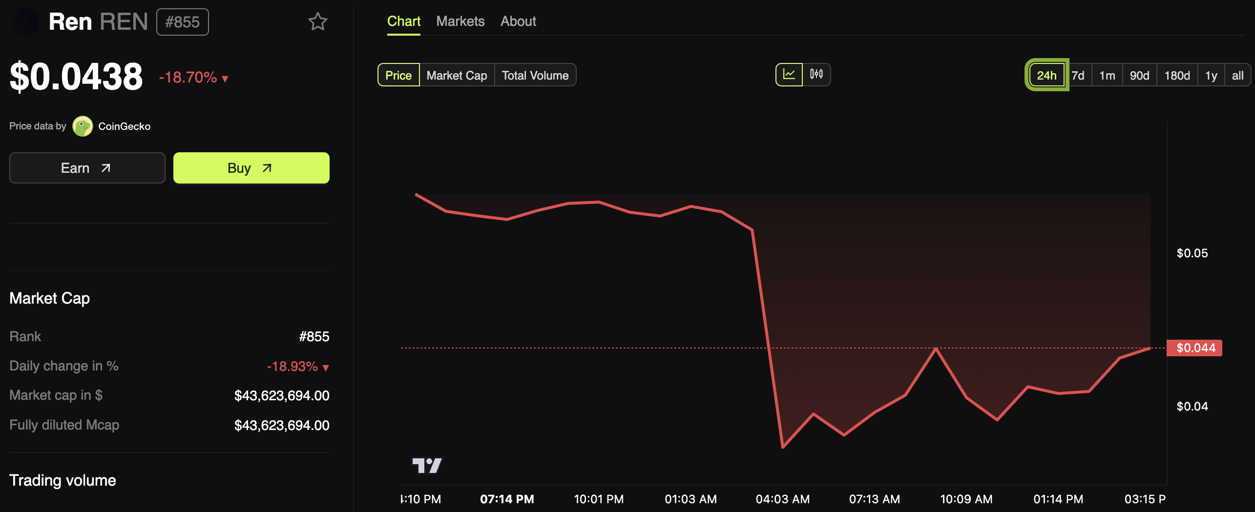 ZachXBTのような著名な評論家はRen Protocolの開発に対して強い懐疑を示し、同社の評判はトークン価値と共に急落した。