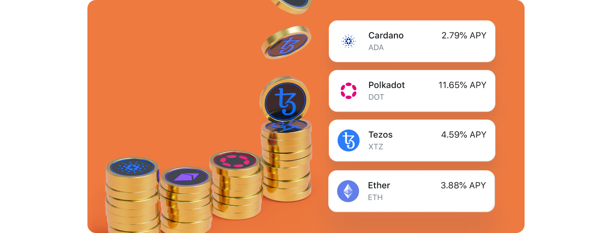 発表によると、ユーザーは特定のトークンのステーキング報酬で最大 11.65% の利益を得ることが可能であるとしている。一方でAPYに関しては変動し、ステーキングされたトークンに応じて変更される可能性があることが説明されている。そして下記画像のように$ADAがは2.79%、$DOTが11.65%、$ETHと$XTZはそれぞれ 3.88% と4.59%のAPYを提供するとしている。 ETHのステーキングにおいては参加条件として、32ETHのステーキングを行う必要があることも明らかになっている。