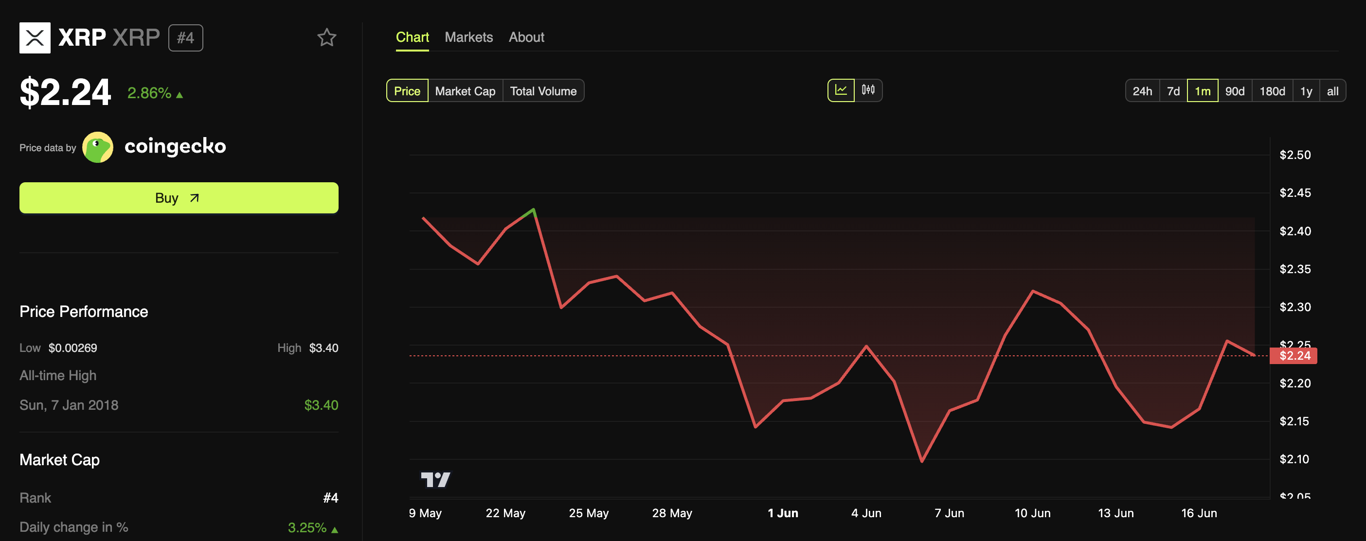 それにもかかわらず、過去1日でわずかな回復が見られた。BeInCryptoのデータによれば、XRPは2.8%上昇し、本稿執筆時点で2.2ドルで取引されている。