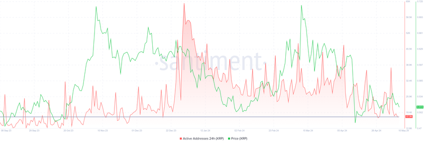 現在、ネットワーク上で取引を行うアドレスの総数は18,000未満に減少している。このような事例は、リップルネイティブトークンが 11月の強気相場から修正された後、局所的な底を打った直後の2023年12月に見られたのが最後です。