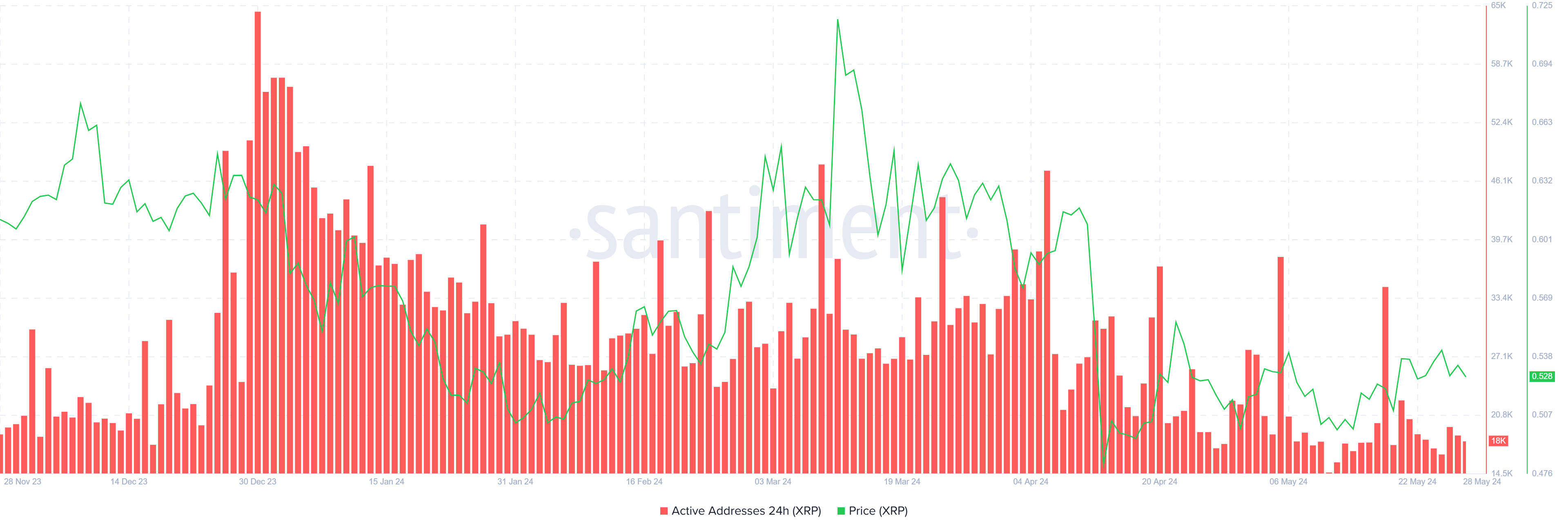XRP価格は、アルトコインの投資家がかなりの弱気姿勢を示しているため、懐疑的な見方の矢面に立たされる可能性がある。2023年12月以降、減少傾向にあるアクティブアドレスは下がり続けている。