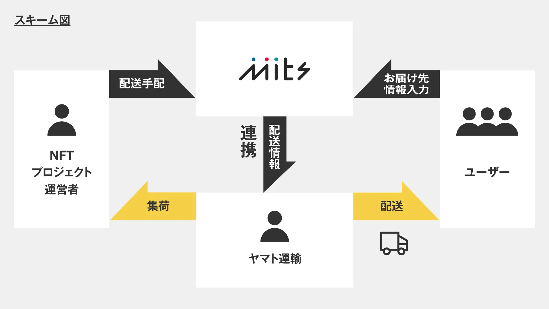 SBINFTは5月をめどに、ベータ版提供中の「SBINFT Mits」にヤマト運輸の配送連携APIサービスを導入する。これによりユーザーがウォレットアドレス等を把握しているプロジェクトから実物資産(RWA)の発送が容易になる。