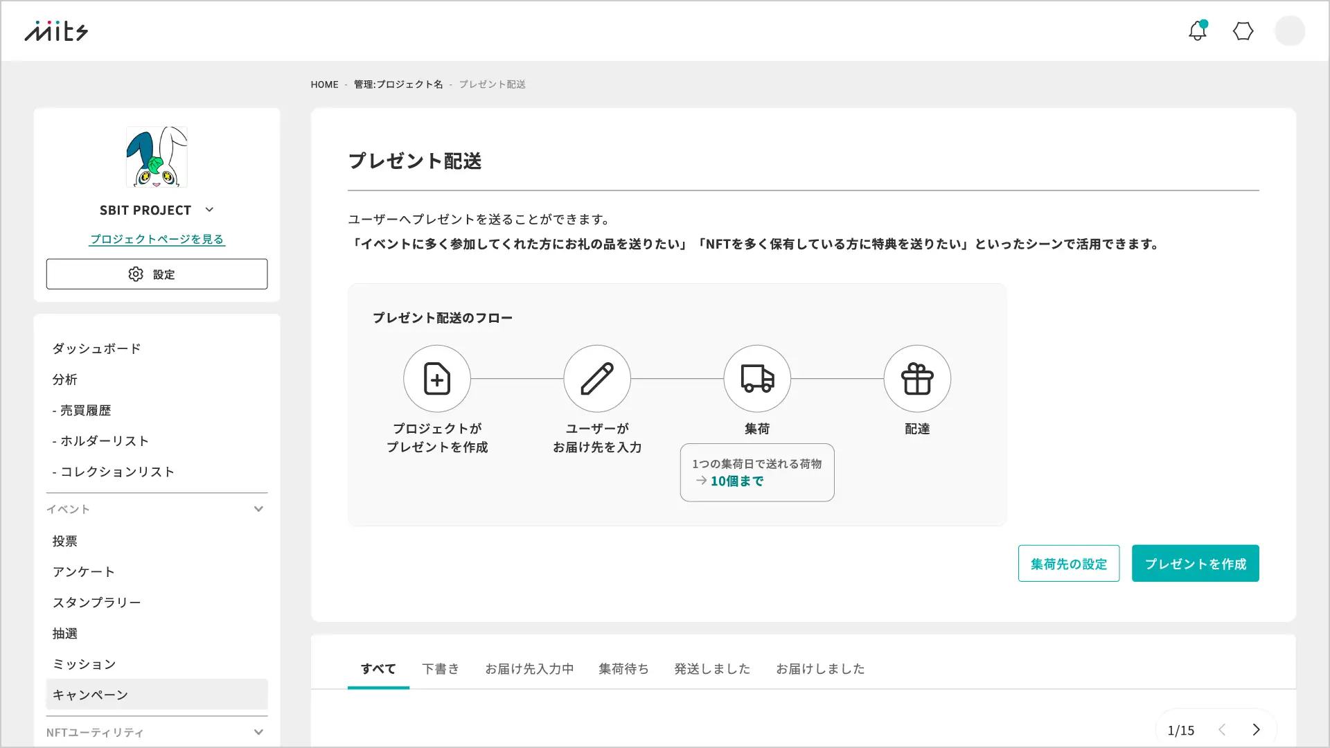 SBINFT Mitsでは特定のNFTを保有しているユーザーに対し、実物資産やデジタルコンテンツを送付するマーケティング手法を活用できる。ヤマト運輸の配送連携APIサービスの導入により、業務効率を維持しつつ、自社商品やコンテンツとWeb3を掛け合わせた事業展開が可能に。