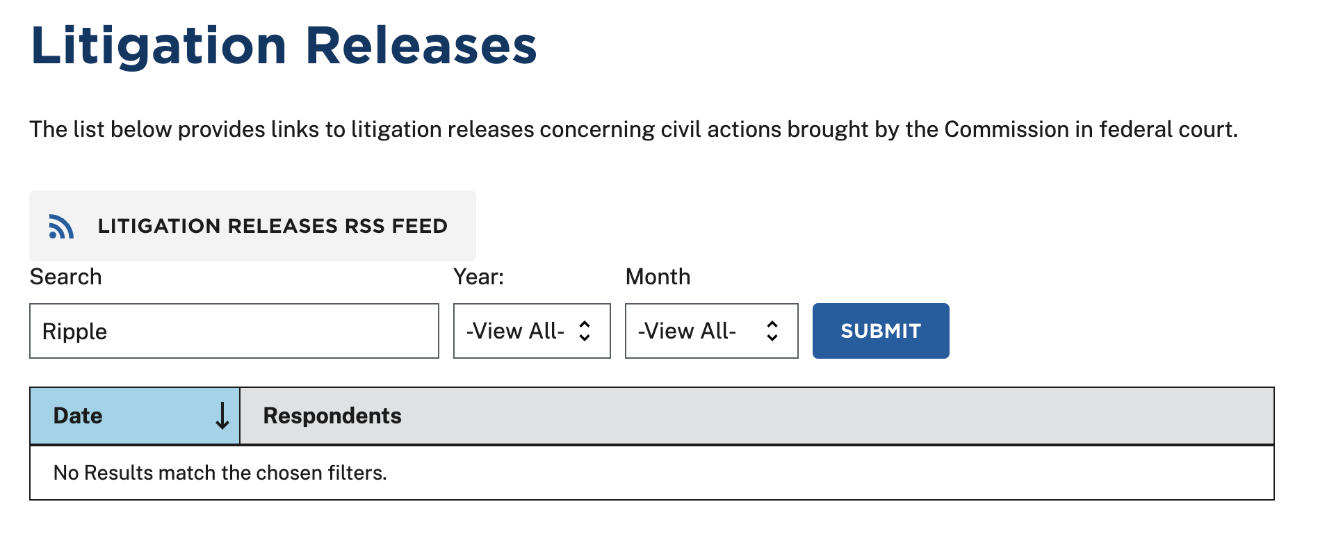 「リップルはSECから解放されたのか?SECの訴訟セクションで“リップル”を検索したが…結果なし!法的闘争は終わったのか?これはXRP対SECの最終章なのか?もし本当なら、これはXRPにとって歴史的な瞬間かもしれない」とインフルエンサーのジョン・スクワイア氏がX(旧Twitter)で主張した。