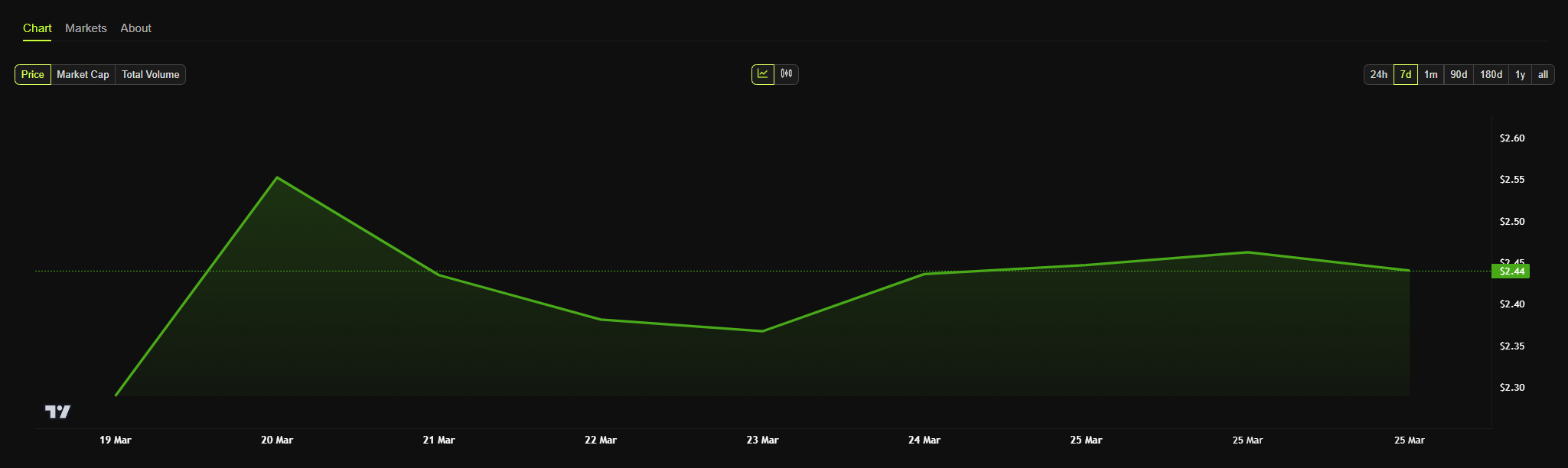 一方、XRPは大部分が価格に織り込まれていた。このアルトコインは過去1週間で約10%上昇しているが、2.50ドルを突破するのに苦労している。
