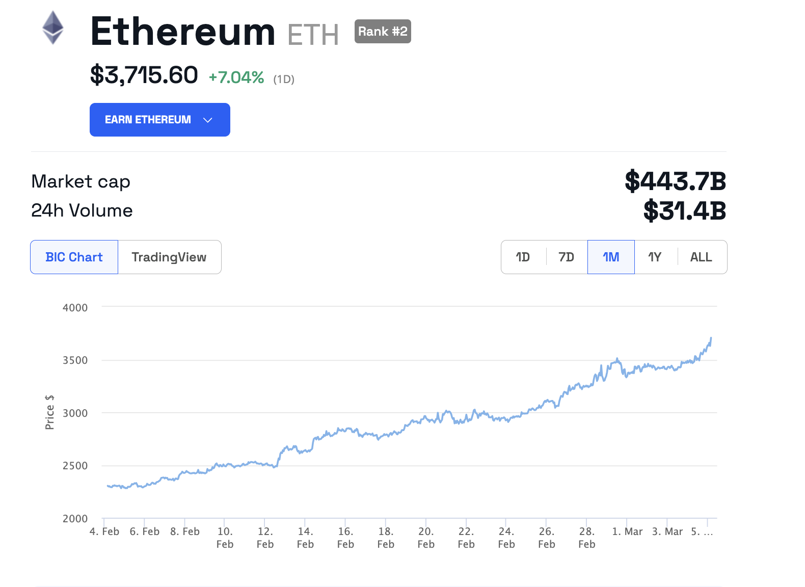 規制の不確実性にもかかわらず、イーサリアムの市場価値は回復力を示しており、過去24時間で7%の上昇を示している。