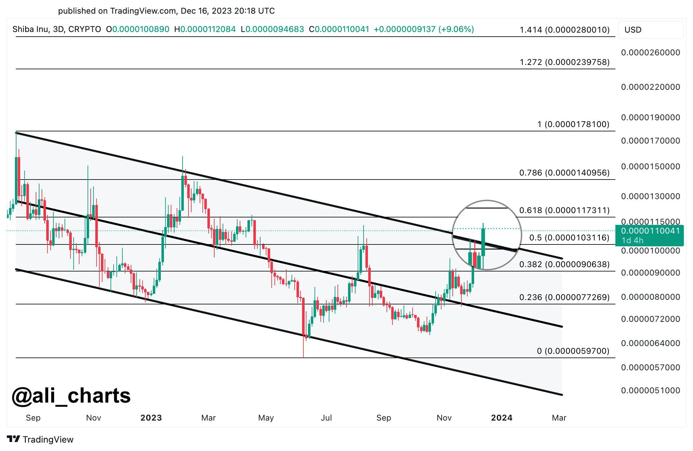 最高ニュース部門責任者のアリ・マーチン氏は、SHIBがレジスタンスからのブレイクアウトの可能性を示していると述べ、重要なサポートレベルである0.0000103ドルを維持すると0.0000140ドルが次の価格目標になるとの見解を示した。