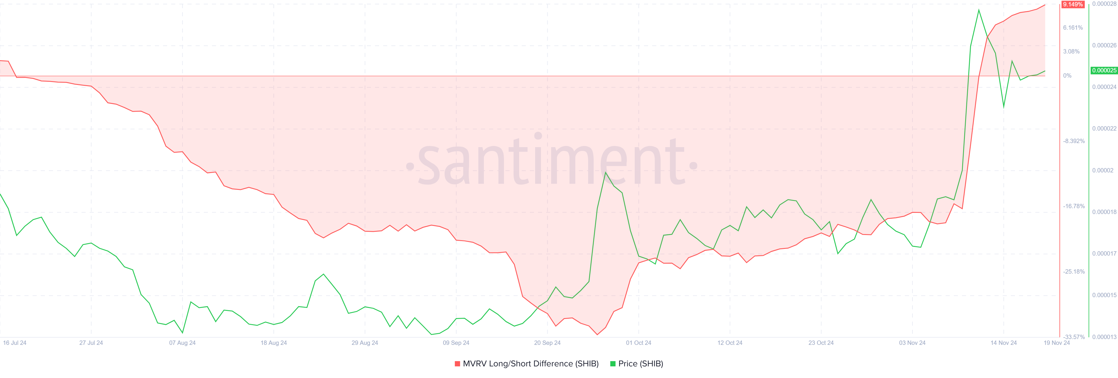 一方、LTHは通常、12ヶ月以上の供給を保持するHODLing行動で知られている。これは売却圧力を減少させ、価格の安定と柴犬コインの支持を提供する。LTHの利益回復は、SHIBの安定化と将来の価格上昇を支援する上で重要な役割を果たす可能性がある。