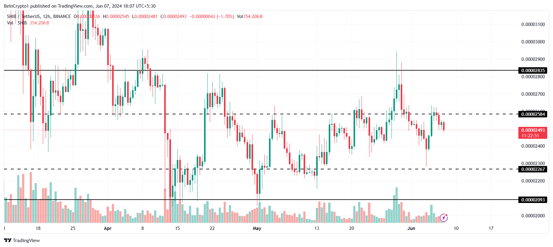 柴犬コインの価格が0.00002835ドルのレジスタンスを突破した場合、2ヶ月ぶりの高値を更新する可能性があります。これは、SHIBを0.00003000ドルまで上昇させ、弱気テーゼを無効にする鍵となる。
