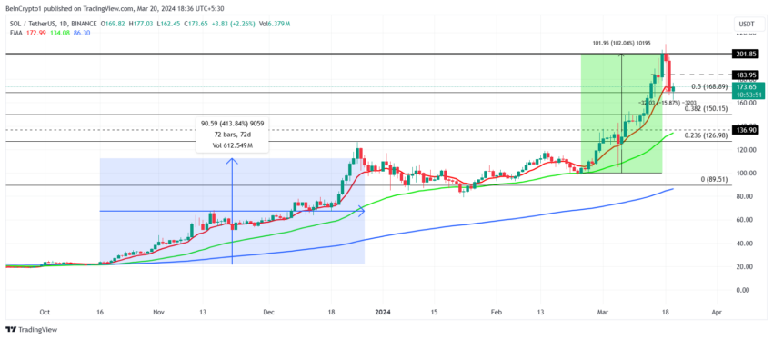SOL価格はすでに168ドルレベルをサポートとしてテストしており、この水準を下回っていない。同レベルは50日指数移動平均(EMA)の合流点でもあり、重要なサポートフロアとなっている。強気が続けば、SOLは再び183ドルのサポートまで上昇する可能性があり、過去48時間に記録された調整の半分近くを回復することになる。同サポートラインが破られると、価格は150ドルへと落ち込む恐れがあり、その場合、強気の見通しは否定される。