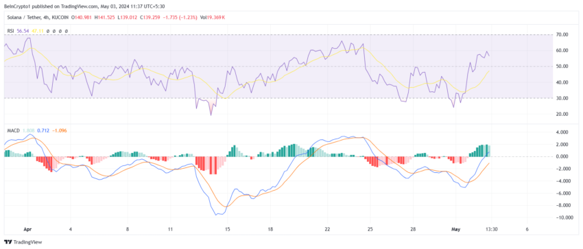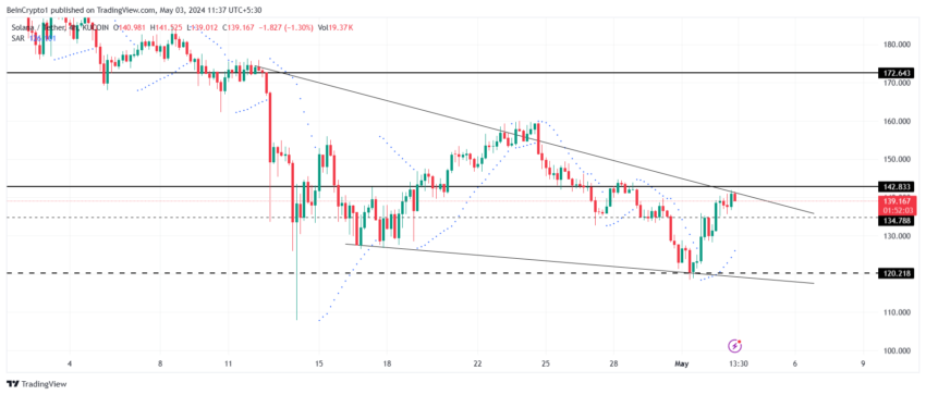 現在139ドルで取引されているSolanaの価格は下降ウェッジを形成しており、まもなくブレイクする可能性がある。この観測は、値動きの速度と変化を測る相対力指数(RSI)で裏付けられる。