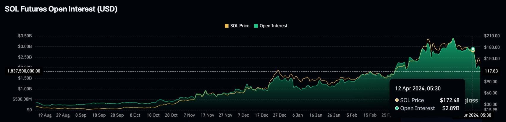さらに悪いことに、投資家はこの資産を楽観視していない。彼らの確信が薄れていることは、オープンインタレスト(OI)の急落からも見て取れる。OIは過去4日間で28.9億ドルから18.4億ドルに減少した。