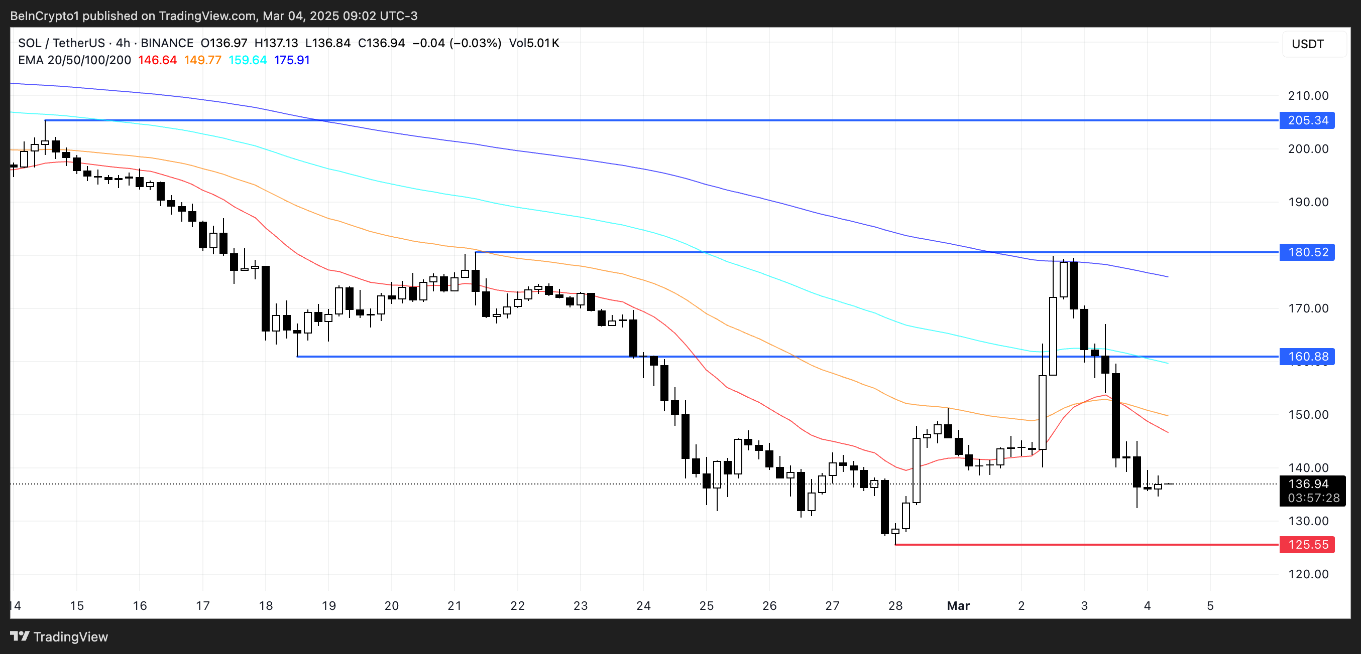 一方、ソラナの価格がトレンドを逆転させ、勢いを取り戻すことができれば、160ドルの抵抗レベルに挑戦する可能性がある。
