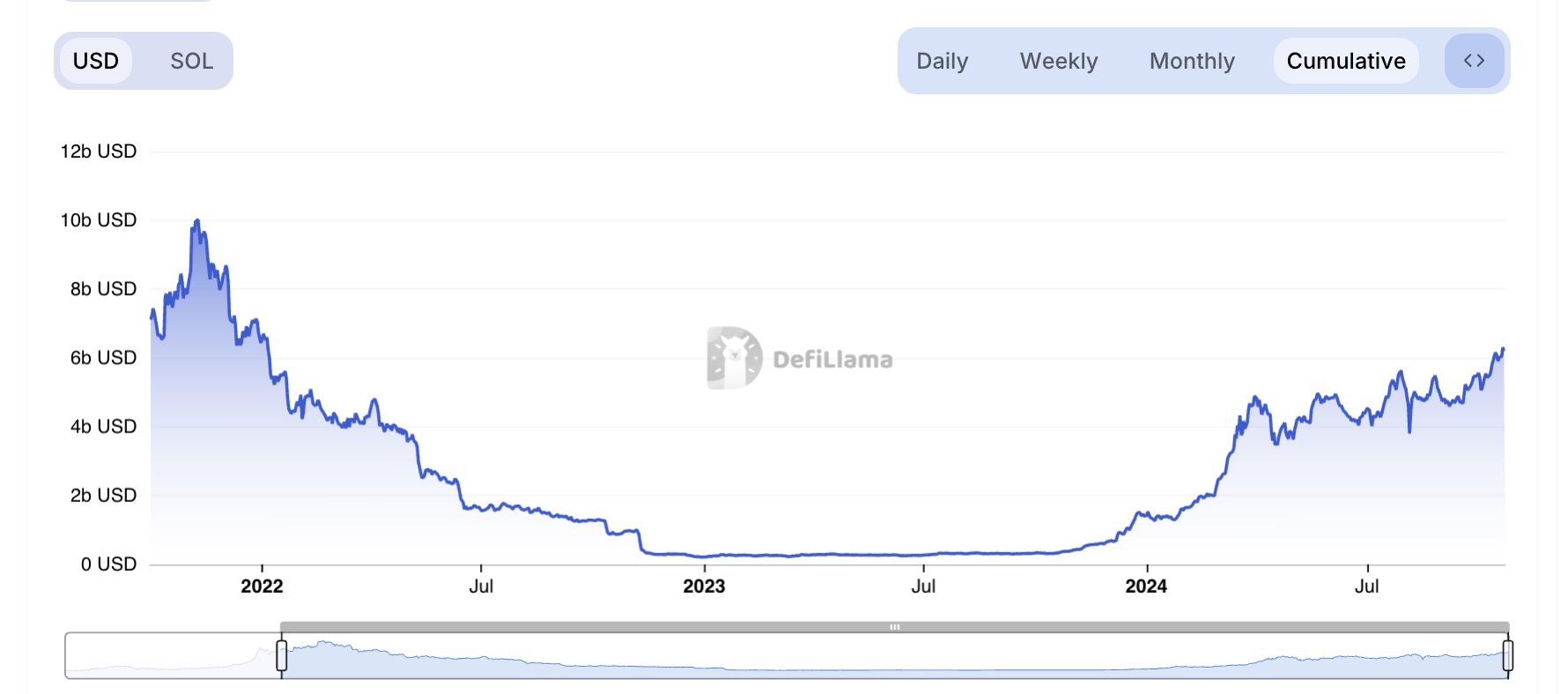 さらに、ソラナの総価値(TVL)は現在622億ドルに達しており、2022年1月以来の最高値です。
