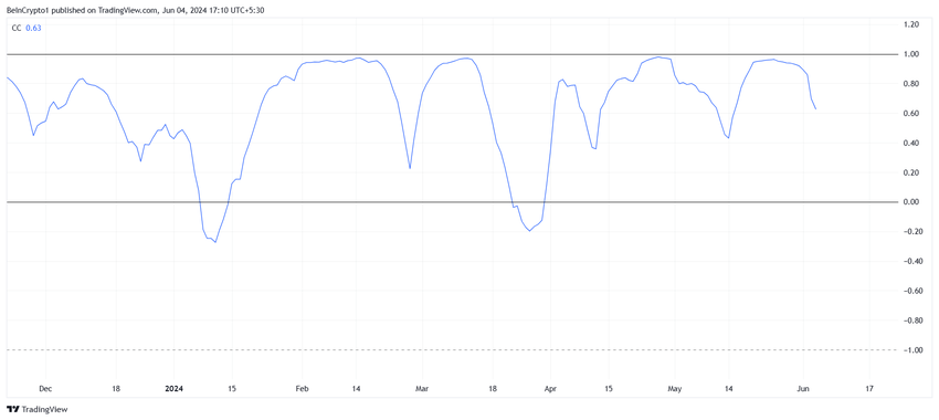 しかし、現時点では、この離脱はSOLにとって好材料だ。その背景には、BTCとの相関関係が低下するたびにアルトコインが上昇した過去の事例がある。現在、この相関関係は0.63で、低下している。