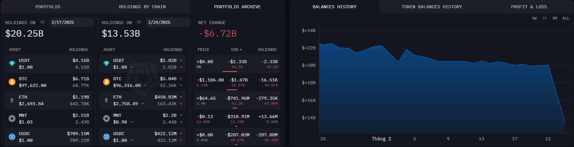 バイビットの対応は称賛を受けたが、ハッキングはパニックによる大量の資金流出を引き起こした。Arkhamのデータによれば、67億ドル以上の流出が確認された。
