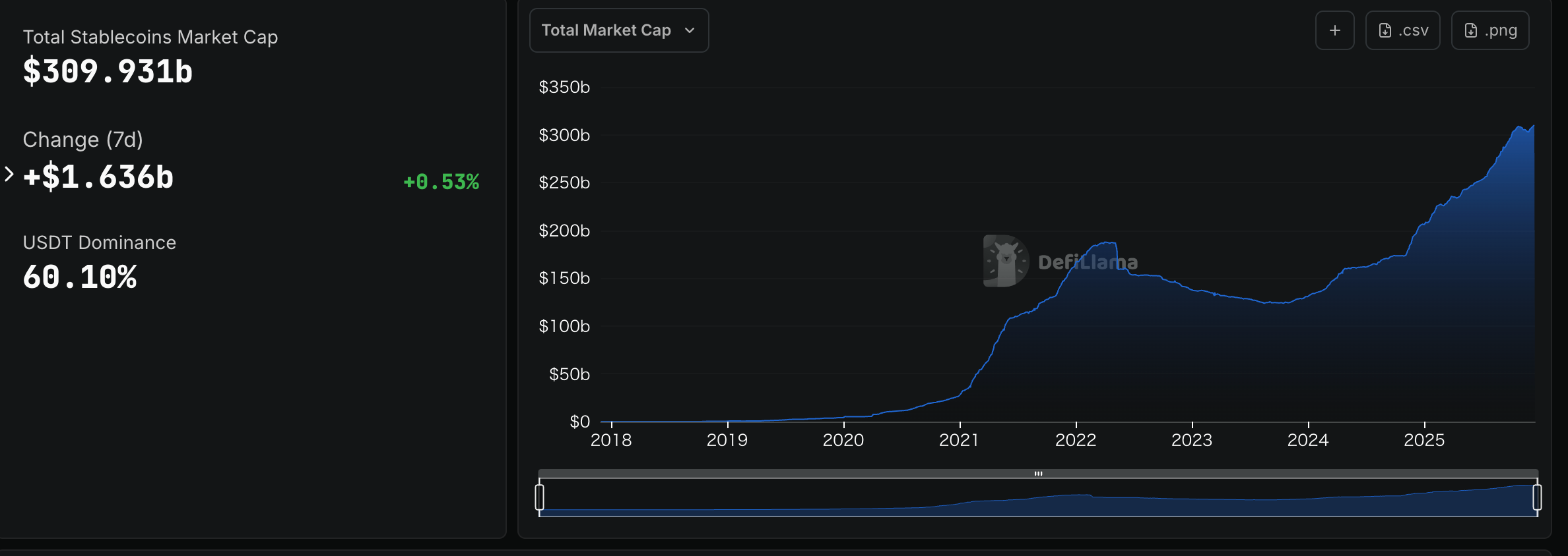 過去12カ月でステーブルコイン市場は52.1%成長し、2037億2800万ドルから3099億1100万ドルへと拡大した。2025年11月の市場調整局面でも成長基調を維持し、直近7日間ではUSDTが0.32%増加して5億9334万ドル分が新規発行された。トロン、ソラナ、アービトラム、アプトス、ポリゴンなど複数のネットワークに展開されている。USDCは0.71%上昇し、イーサリアム、ソラナ、ハイパーリキッド、ベース、BSCで5億5556万ドル分が追加発行された。