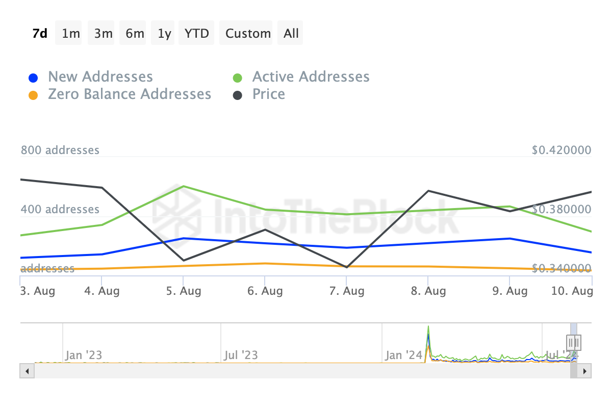 さらに、プロジェクトはユーザー・エンゲージメントの著しい急落を経験し、最近ではCEOが辞任した。興味深いことに、オンチェーン・データは、ネットワーク・アクティビティに顕著な改善があったことを明らかにしている。