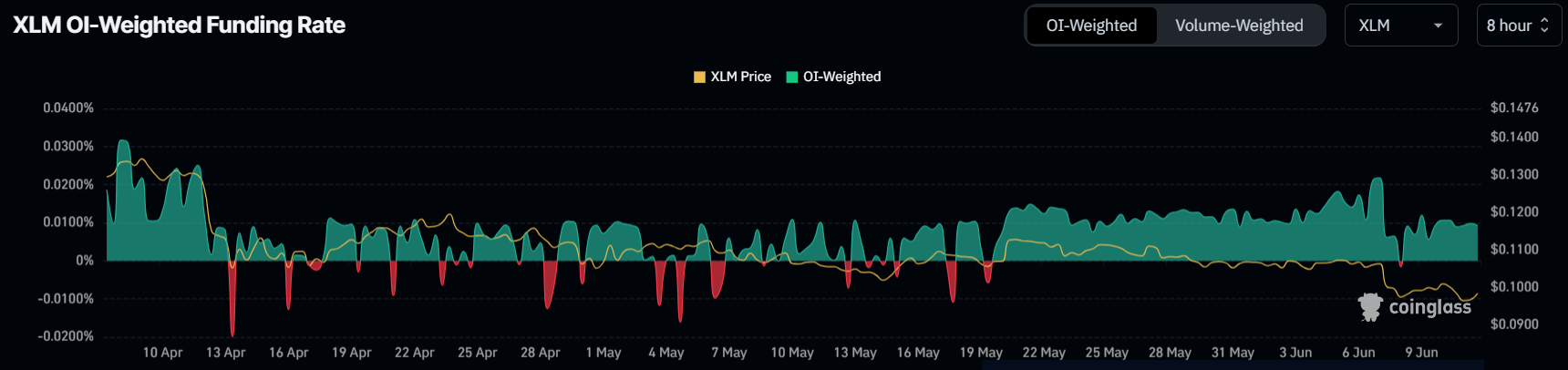 ファンディングレートがプラスの場合、ロング契約がショート契約を支配する。逆に、マイナス金利は、ショート契約が優先されることを示唆する。XLMの場合、ファンディングレートは一貫してプラスであり、投資家が価格上昇を予想していることを示している。
