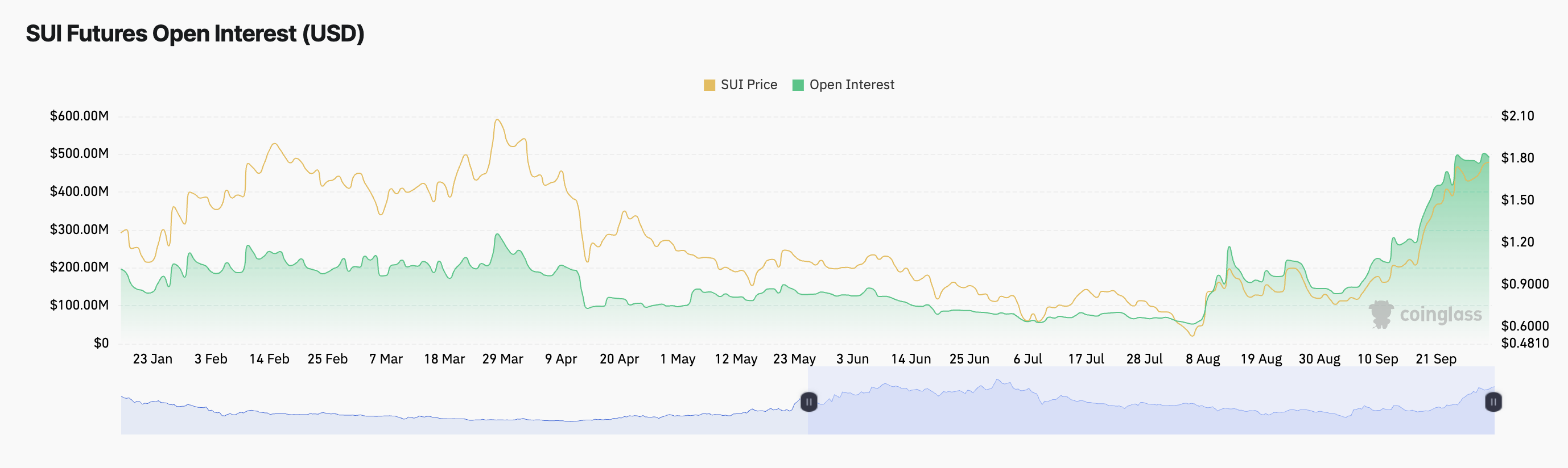 SUIの建玉の増加は、強気の見通しをさらに支えています。7億5000万ドルで、1月以来の最高水準に達しました。