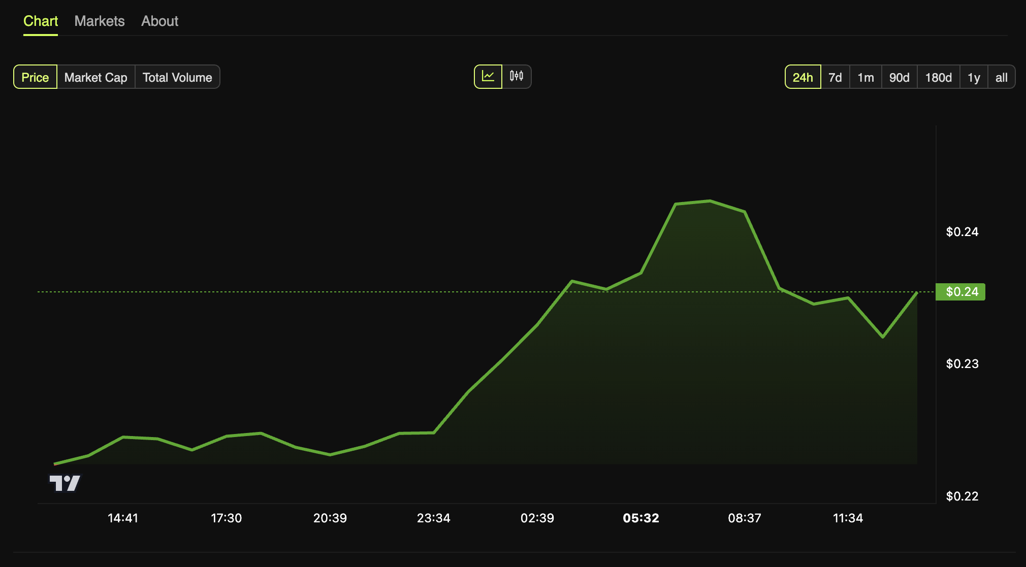 それだけではない。興奮はTRXにも波及し、過去1日で価格が5.7%上昇した。本稿執筆時点で、アルトコインは0.24ドルで取引されている。