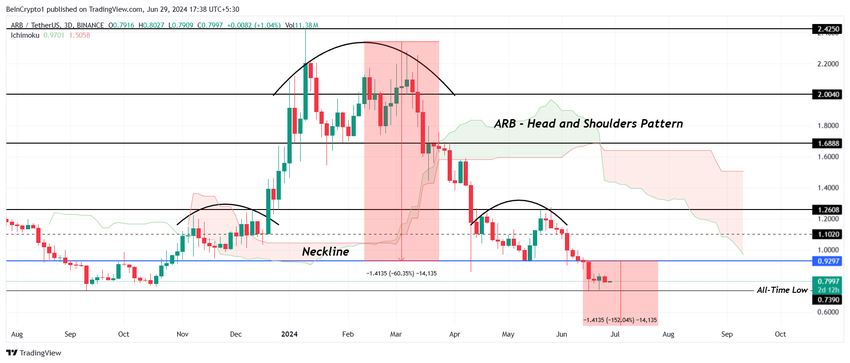 市場心理の変化はこの下落を加速させ、7月末までにARBは新たなATLを見る可能性がある。