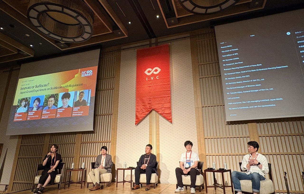 台北のベンチャーキャピタルInfinity Ventures Crypto (IVC)が主催するWeb3カンファレンス「IVC Summit 2025」が2日、京都市内で開催された。7つのパネルディスカッションが用意される中、注目を集めたのは「イノベーションか停滞か?規制下における日本のステーブルコイン大実験」と題したディスカッションだ。
