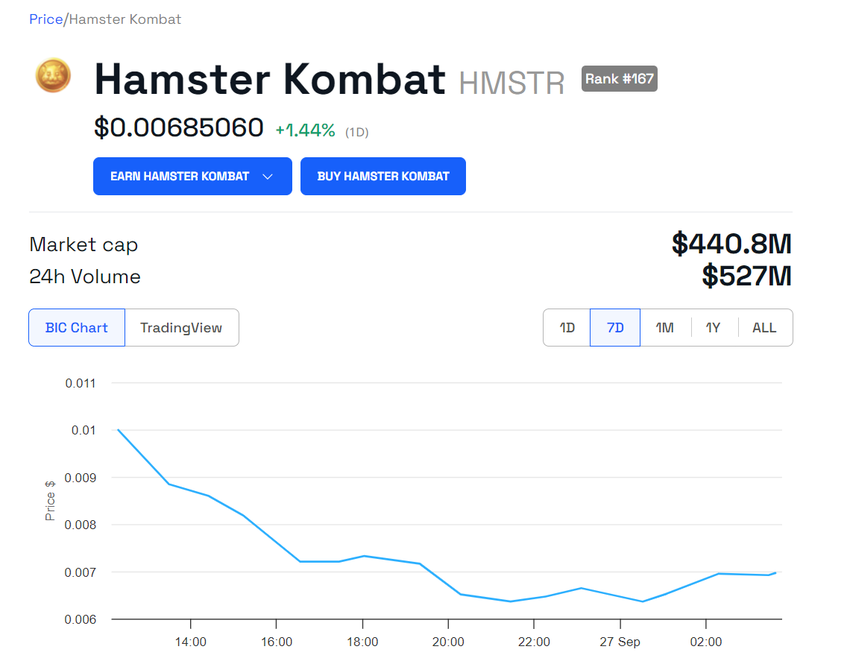 主要な取引所で取引が開始された後 、HMSTRトークンの価格が大幅な変動に直面し たため、論争は深まりました。0.014ドルで取引を開始しましたが、数時間以内にすぐに20%下落して0.011ドルになりました。市場センチメントがさらに低下するにつれて、価格は下落傾向を続け、約0.0068506ドルに達しました。