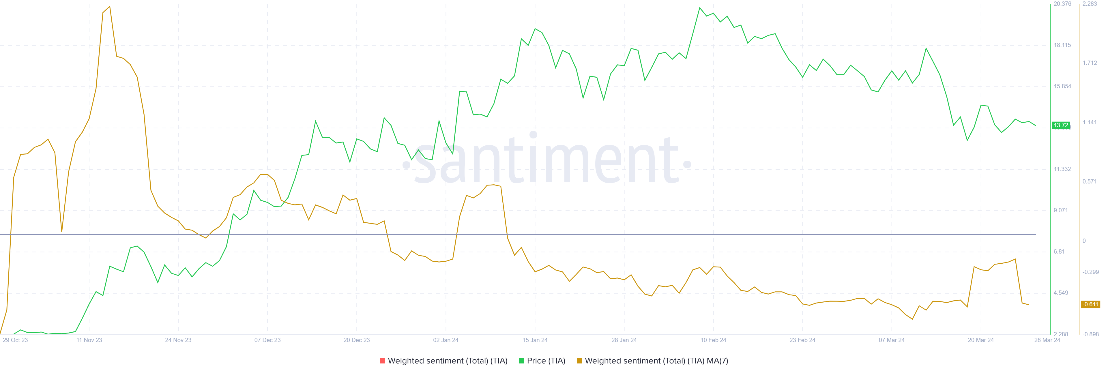 しかし、個人投資家は現在、若干悲観的な見方を示している。彼らが抱く全体的なセンチメントは否定的で、TIAの大幅な上昇を妨げる可能性がある。