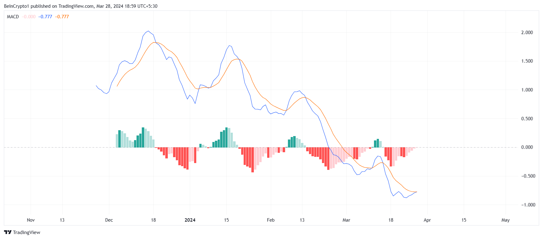 TIAのプラス・レートは、調整にもかかわらず、トレーダーが価格の上昇を期待していることを示している。移動平均収束ダイバージェンス(MACD)インジケータが強気を示しているため、トレーダーの予測は部分的に正しい。
