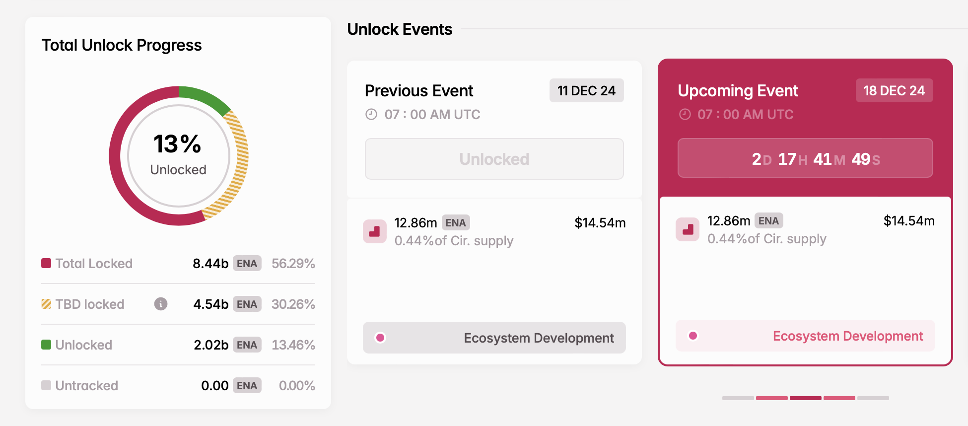 ENAトークンは、保有者がガバナンス決定に参加することを可能にする。12月18日に、エコシステム開発のために1,200万以上のENAトークンをロック解除する予定である。
