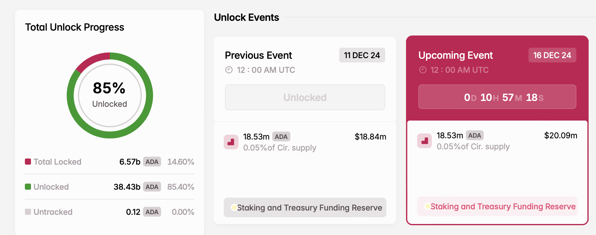- ロック解除されるトークン数: 1,853万ADA