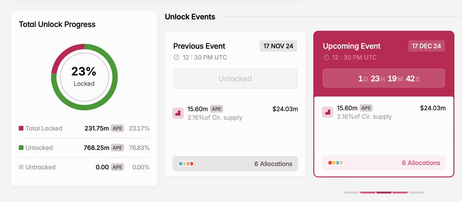 - ロック解除されるトークン数: 1,560万APE