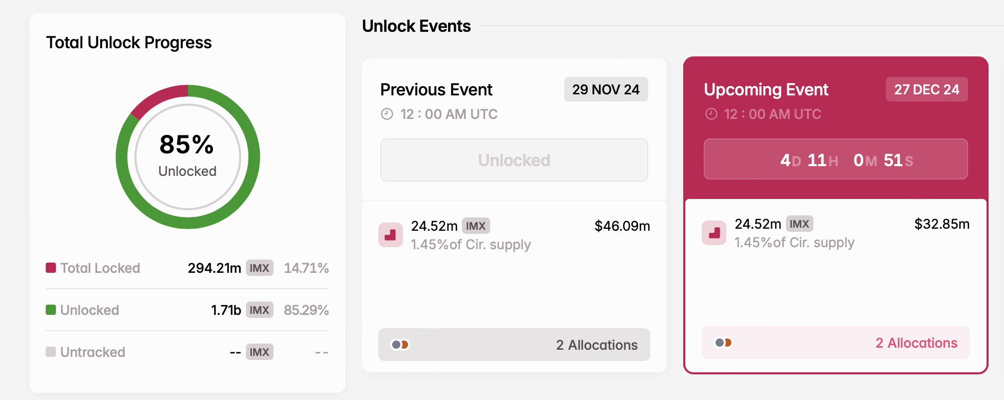 12月27日に、Immutableは2,452万IMXトークンを解放する。これらのトークンはプロジェクト開発を支援し、Immutableエコシステム全体の成長を促進するために指定されている。