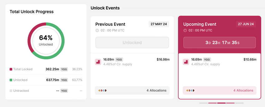 数日後、YGGはトークンの大部分をアンロックする。これらのトークンはコミュニティ、開発者、投資家、国庫に分配され、ギルドの成長とエコシステムの発展をさらにサポートする。