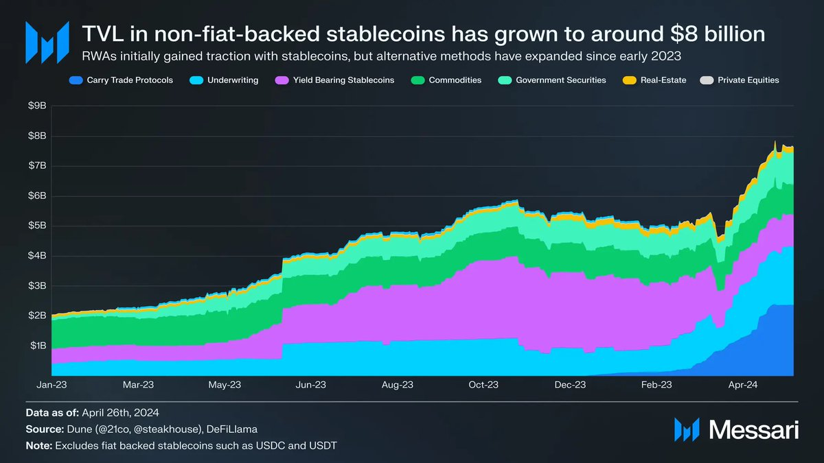 Messariの最新レポートによると、現実資産(RWA)トークン化プロトコルでロックされた総価値(TVL)が、4月26日時点で過去最高の80億ドルに急増している。これは、2月以来60%近い増加である。