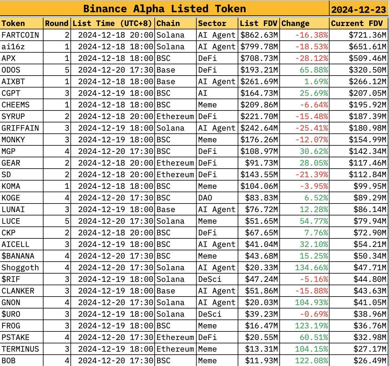 多くの投資家がこの新機能に期待していたが、統計によれば、Binance Alphaリストに登場するすべてのトークンが価値を上げたわけではない。
