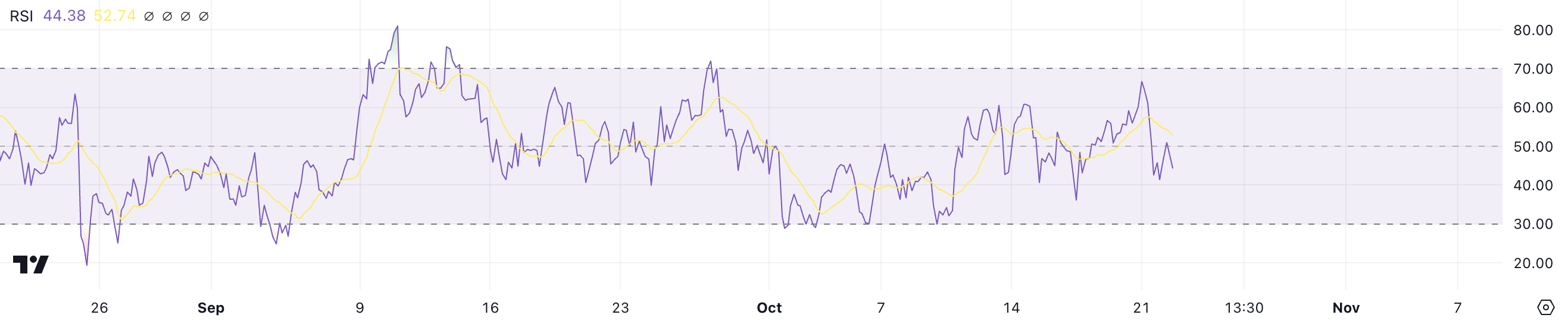 Sponsored Sponsored現在のRSIレベルは44.38で、この統合が続く可能性があります。現時点でTONの価格には明確な動きが見られません。