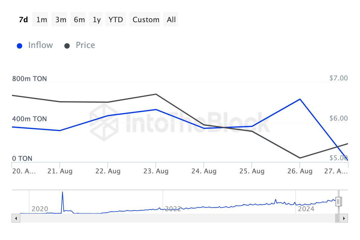 Sponsored Sponsoredしかし、現在進行中の売り浴びせとPavel Durov氏の未解決の状況は、Toncoinの価格と時価総額がさらに下落する可能性を示唆している。さらに、ToncoinのLarge Holders Inflowは過去7日間で95%減少している。